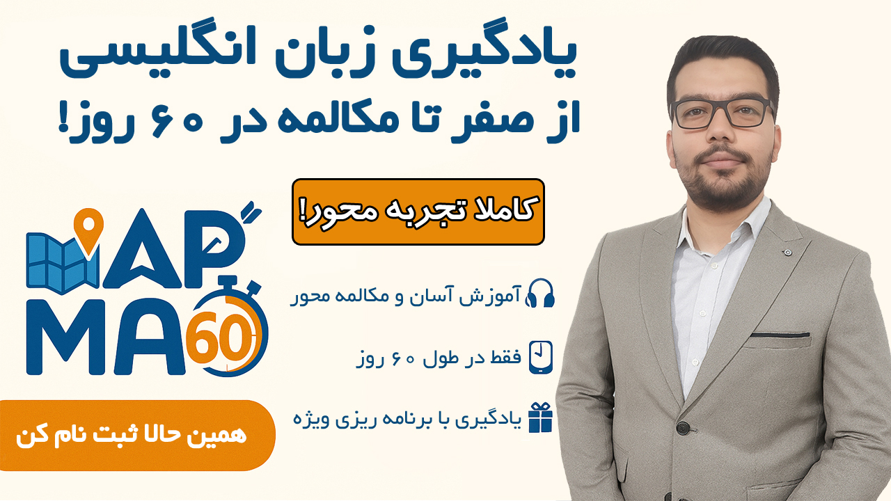 دوره آموزش زبان انگلیسی از صفر تا مکالمه در ۶۰ روز با روش MAP60 یک مجموعه بی نظیر و بسیار کاربردی برای یادگیری زبان انگلیسی از صفر است. این پکیج شامل سه موضوع آموزش مکالمه کاربردی ، آموزش کلمات ضروری انگلیسی و لغات ضروری ۵۰۴ است که توسط استاد گرانقدر جناب آقای مهدی گلشنی تهیه و تدریس شده است.