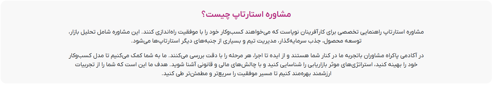 فراموش نکنید که اشتباهات جزئی هم در این کارها میتوانند باعث شکست ایده شما شوند. پیشنهاد میکنیم در انجام این کار از خدمات مشاوره استارتاپ مجموعه های معتبر مثل آکادمی پاکراه استفاده کنید.