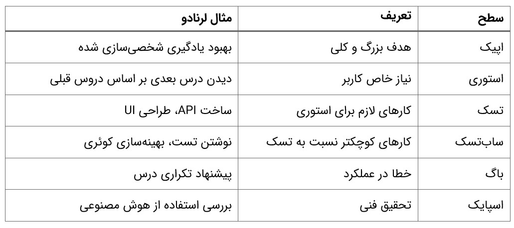 اینجاست که ساختار سلسلهمراتبی اپیک => استوری => تسک => سابتسک میاد وسط.