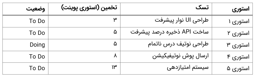 نتیجه: یکی از تسکهای استوری ۳ (امتیازدهی) به اسپرینت بعد منتقل میشه.