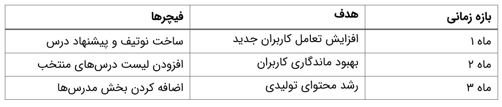 KPI ماهانه = نرخ تکمیل ویدیوها، نرخ بازگشت کاربران جدید.