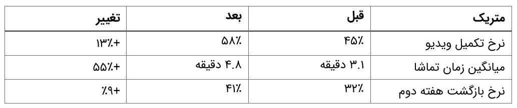 نرخ تکمیل ویدیو از ۴۵٪ به ۵۸٪ رسیده
