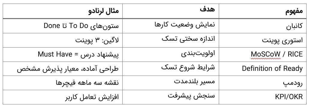 تو مسیر ساخت لِرنادو، تکتک این اصطلاحات رو با هم یاد میگیریم و میبینیم چطور از جلسهی برنامهریزی تا انتشار فیچر، همهچی با این مفاهیم جلو میره.
