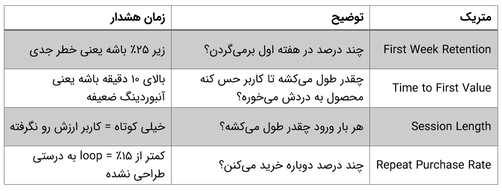 متریکهای شکست، ریزش کاربر (Churn)، و اینکه چطوری محصول رو بهتر کنیم قبل از اینکه دیر بشه.