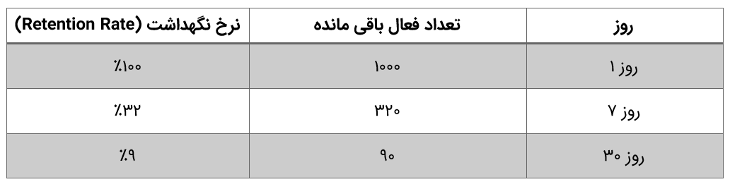 یعنی چند درصد از کاربرهایی که روز اول اومدن، روز ۷ هم باهاتن؟ روز ۳۰ چی؟ روز ۹۰؟