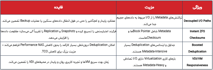 Metadata Pinning بهصورت کامل با ساختار Caching چندلایه ZFS هماهنگ است: