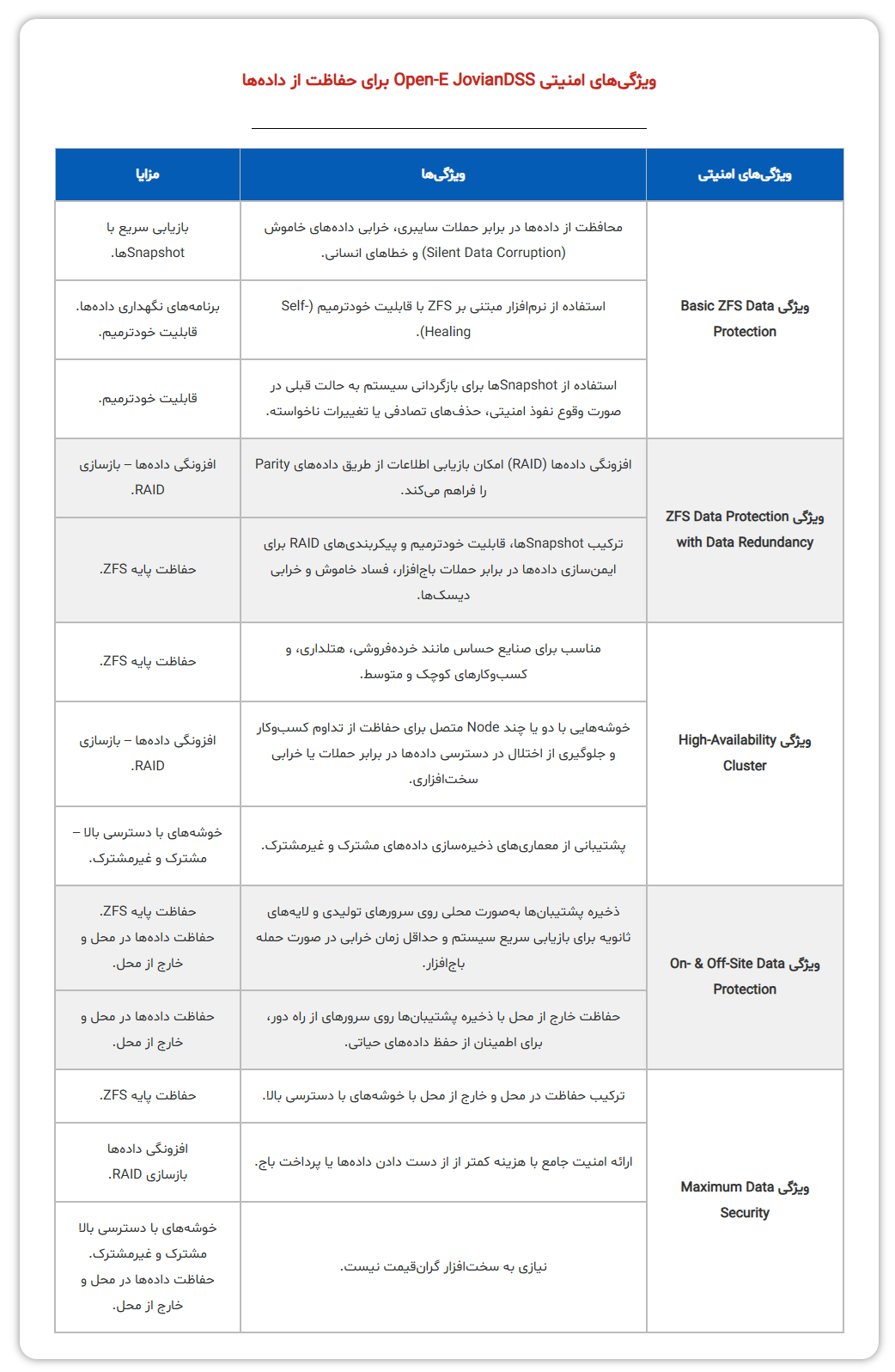 سطوح امنیتی داده در Open-E JovianDSS