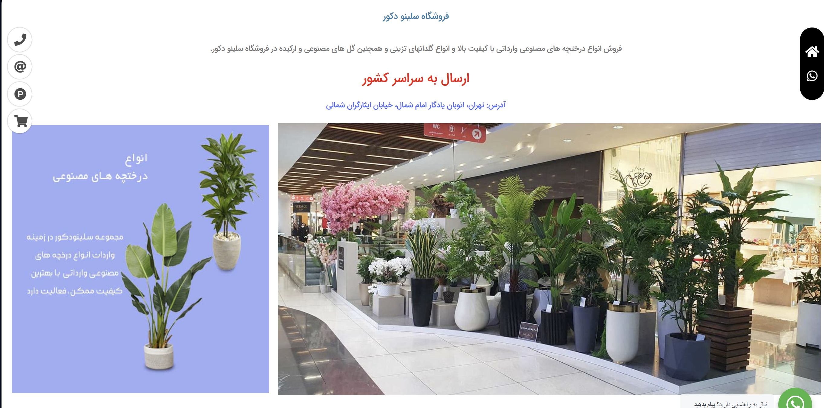 سلینو دکور یک فروشگاه آنلاین کاملا معتبر است و برای خرید آنلاین گیاهان مصنوعی نیز توصیه میشود. این فروشگاه با درخت های شکوفه خاص که در این مجموعه ساخته میشود شناخته شده است.