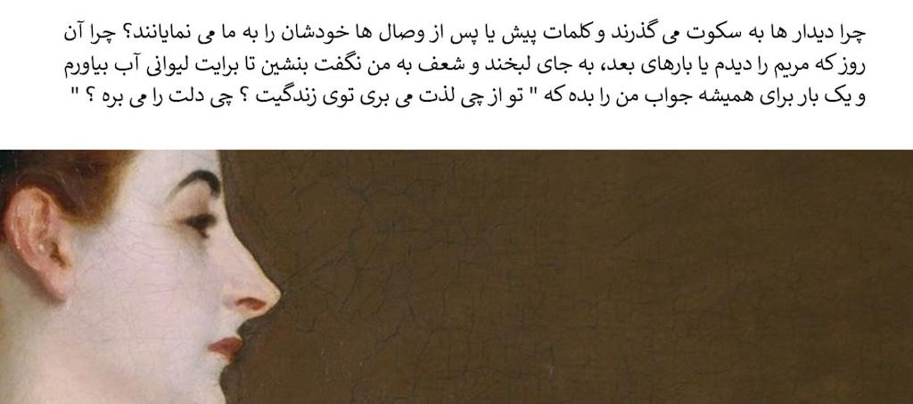 این روزها شبیه شناگری هستم که خلاف مسیر رودخانه شنا می کند. گاهی سرحالم و پر امید و با تلاش فراوان راهم را پی میگیرم و گاهی رها میکنم خود را در دست آب، آب وحشی، آب بیمنطق که مسیر خودش را میرود و کاری هم به کسی ندارد. /بلند شدم از یخچال شیشه آبی که همیشه آنجا دارم را برداشتم و چند قلپ آب خنک نوشیدم، کلید سماور برقی را هم زدم که آب جوش بیاید و چاییی بنوشم./ //خمیازه و خمیازه// راستش را بخواهی خیلی وقتها نمیدانم کجایم و چه میکنم. گویی در خلأ معلقم. نمیدانم به چی متصلم و مسیرم به کدام سمت است. خیلی وقتها میگویم کاش لیلی بود. کاش میشد ببینمش و باهاش حرف بزنم. /پلکهام دارند میفتند. بلند شدم و رفتم در لیوان کمی چای سبز ریختم و رویش آب جوش و یک قاشق هم شکر، و هم زدمشان./ آره خیلی وقتها با خودم میگم کاش لیلی از ایران نرفته بود و باز می دیدمش و با هم حرف میزدیم. اصلا او لنگری بود برای فکر و احساس و جانم. /سیگاری آتش می زنم و پکی بر آن نزده غرق در فکر می شوم. راستی این روزها سرفههام کمتر شده است. مدتی بود که خیلی سرفه می کردم. دایم و بی دلیل. شاید هم به خاطر سیگار بود. این سیگار هم چیز مسخره ایه که من نمیدانم چه مرگمه که ولش نمیکنم./