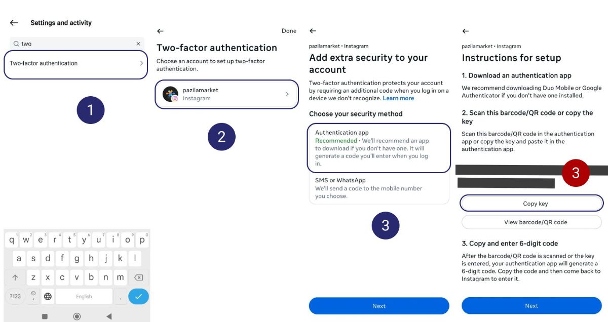 5. حالا برگردید به برنامه اینستاگرام و کدی که در Google Authenticator ساخته شده رو وارد کنید. این کد هر چند ثانیه یکبار تغییر میکنه، پس مطمئن بشید که کد جدید رو سریع وارد کنید تا مشکلی پیش نیاد!