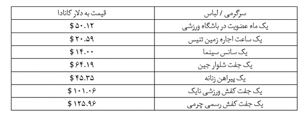 زندگی فقط کار و درس نیست. مقداری از هزینه تحصیل در کانادا صرف سرگرمی و استراحت نیز میشود. کانادا از مقاصد گردشگری جهان نیز هست. طبق آمار، شهروندان کانادا ماهانه ۵۰ دلار کانادا صرف سرگرمی میکنند. میتوانید در روزهای تعطیلتان شهر را بگردید و با دوستان جدیدتان سرگرمیهای کانادا را تجربه کنید. با توجه به آبوهوای بسیار سرد کانادا احتمالا مجبور شوید مقداری لباس گرم نیز بخرید. در جدول زیر نمونهای از هزینههای سرگرمیها و لباس را در کانادا مشاهده میکنید: