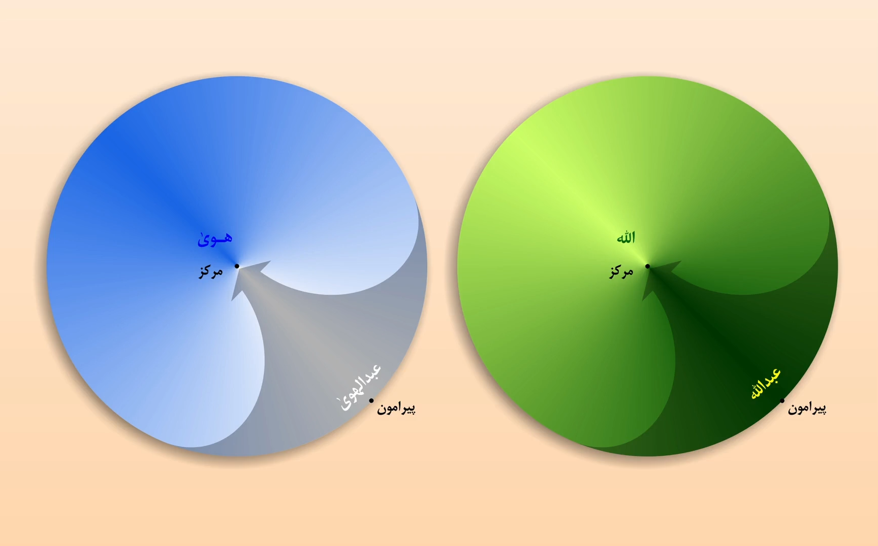 اینجا ۲ تا بال شکل میگیرد در این نگاه اللهنگر. بال تعینش ربوبیت: «الحمدالله رب العالمین». این رب وقتی میخواهد همه چیز را همین جوری بپروراند چه میکند؟ ملکی و جنود ملکی را میآورد تو صحنه به نام میکائیل عظیم که مظهر اسم رب حضرت الله است. مظهر اسم رب، آنی که ربوبیت میکند حضرت میکائیل است. به این نکته عنایت داشته باشید این فقط در اسلام است ها. در مسیحیت و یهود نیست.