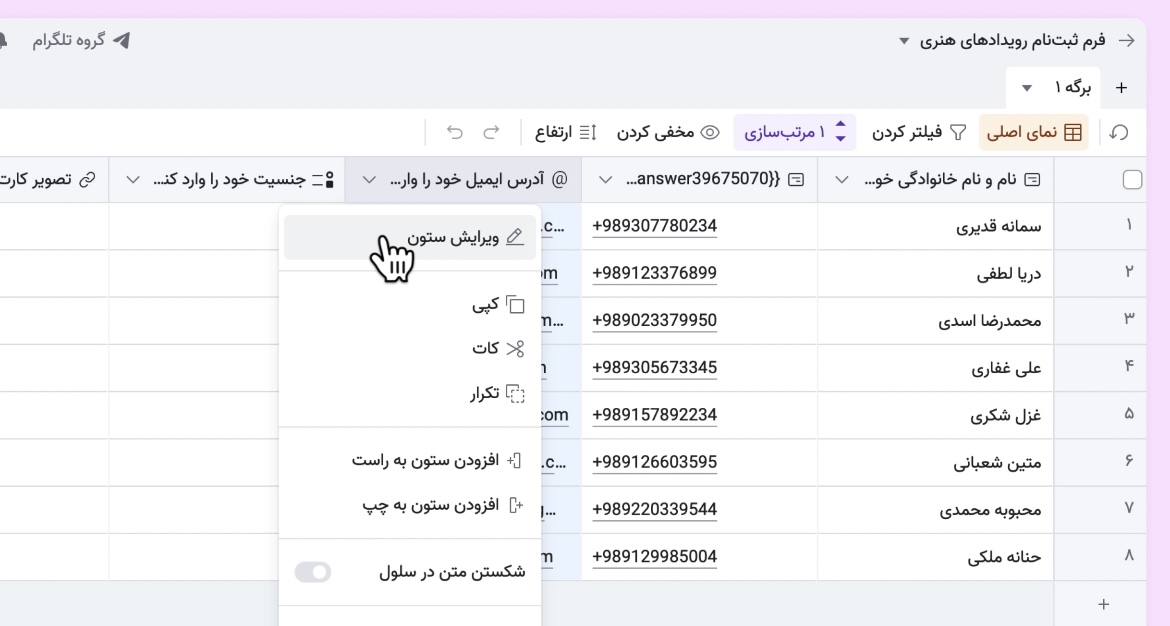 اگر فرم ثبتنام شما شامل رویدادها یا زمانهای مختلفی است، میتوانید برای هرکدام نمای جداگانهای بسازید تا فقط دادههای مربوط به همان بخش، نمایش داده شود.