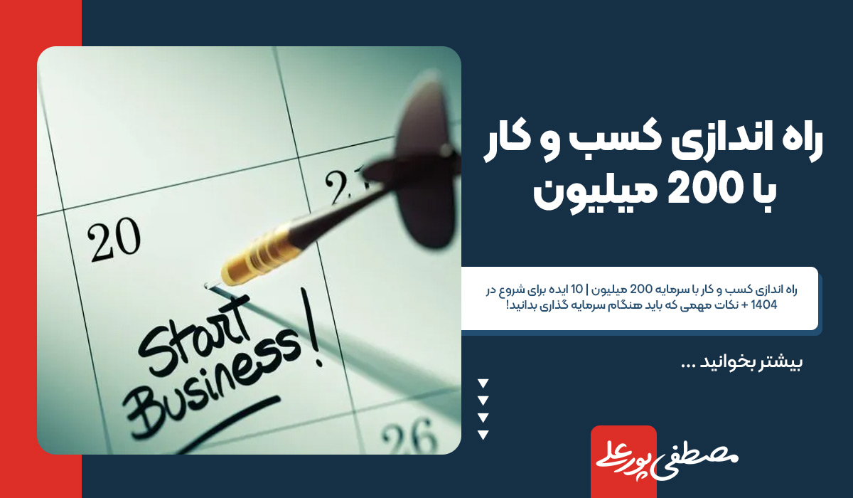 اگه فکر میکنی با ۲۰۰ میلیون فقط میشه یه کار کوچیک راه انداخت، بهتره بدونی راه اندازی کسب و کار با ۲۰۰ میلیون کلی فرصت خوب داره؛ مخصوصاً اگه آقای مصطفی پورعلی، مشاور کسب و کارتون باشه.