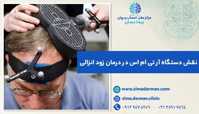 درمان زود انزالی با دستگاه آر تی ام اس بر پایه ارسال پالسهای مغناطیسی به مناطق خاصی از مغز است که در تنظیم انزال نقش دارند. منبع: وبسایت کلینیک زیمادرمان