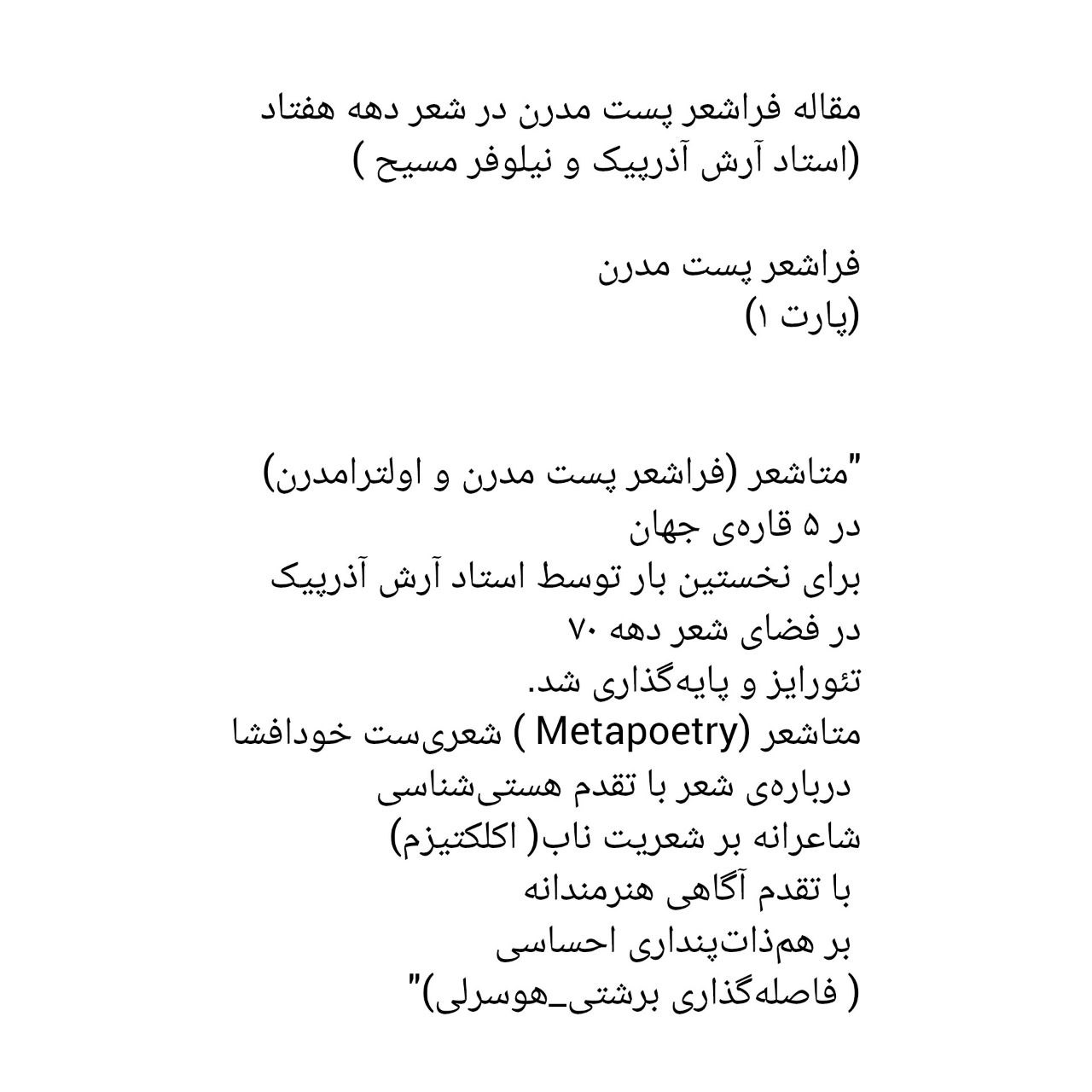 ♦️🔷♦️مقاله فراشعر پست مدرن در شعر دهه هفتاد استاد آرش آذرپیک و نیلوفر مسیح