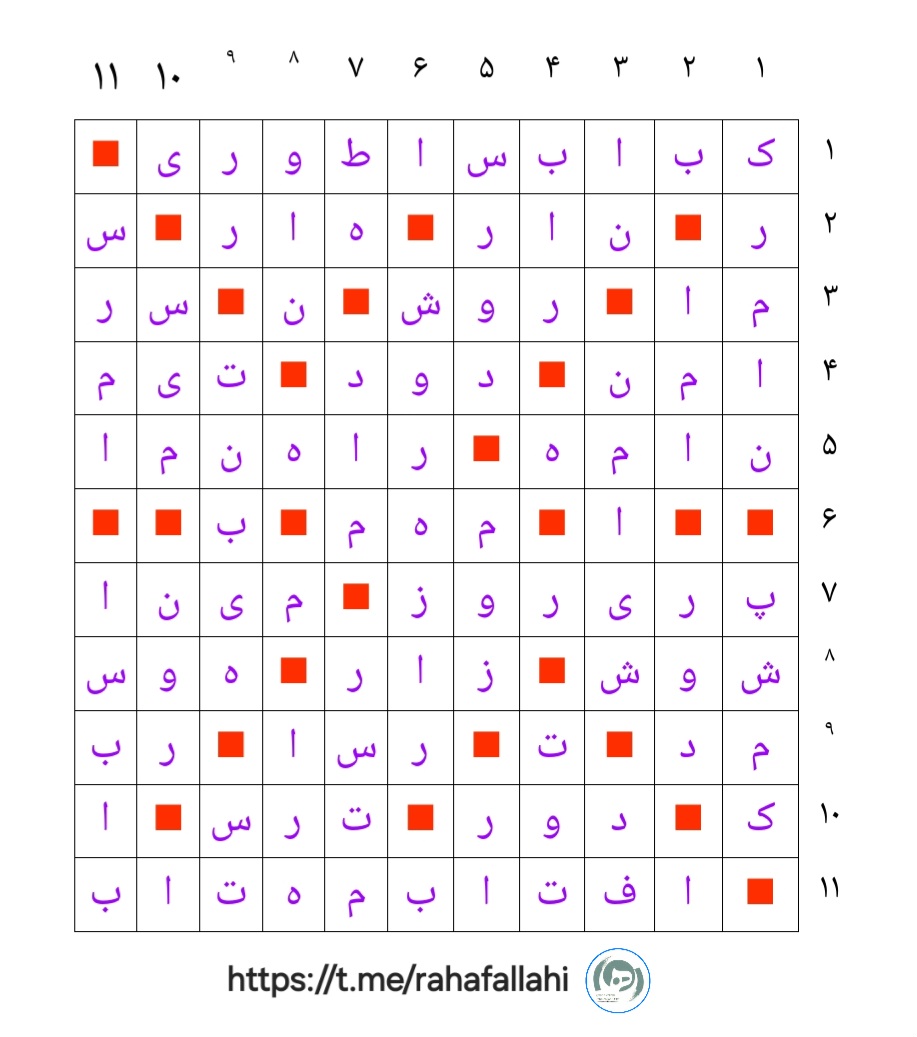 جدول کلمات متقاطع ویژهی کودک و نوجوان