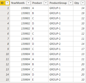 همونطور که گفته شد این تابع در حقیقت یک حذف کننده فیلتره که فیلتر هایی به غیر از مواردی که شما به طور صریح در DAX نوشته اید رو حذف خواهد کرد. برای آشنایی بهتر با عملکرد و نحوه استفاده از این تابع با یک مثال به توضیح جزییات این تابع می پردازیم. فرض کنید جدولی با اطلاعات زیر در اختیار داریم.