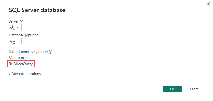 برای استفاده از این روش کافیه گزینه Direct Query رو از قسمت Data connectivity mode انتخاب کنید.
