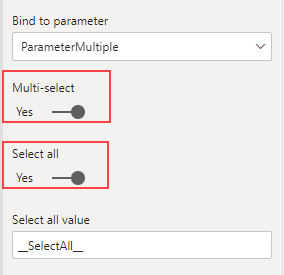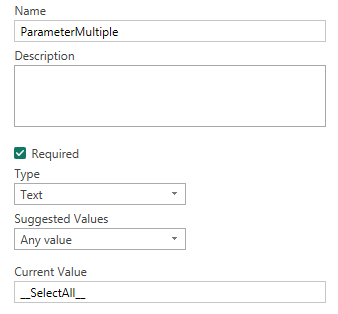 پارامتر رو با نام ParameterMultiple نعریف می کنم و مقدار پیش فرض رو برابر SelectAll قرار می دهم.