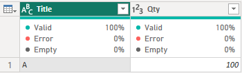 USE test GO DROP TABLE test_table GO CREATE TABLE [dbo].[test_table]( Title VARCHAR(10) NOT NULL, Qty INT NOT NULL ) GO INSERT INTO test_table VALUES ('A', 100), ('B', 200), ('C', 300), ('D', 400), ('E', 500)