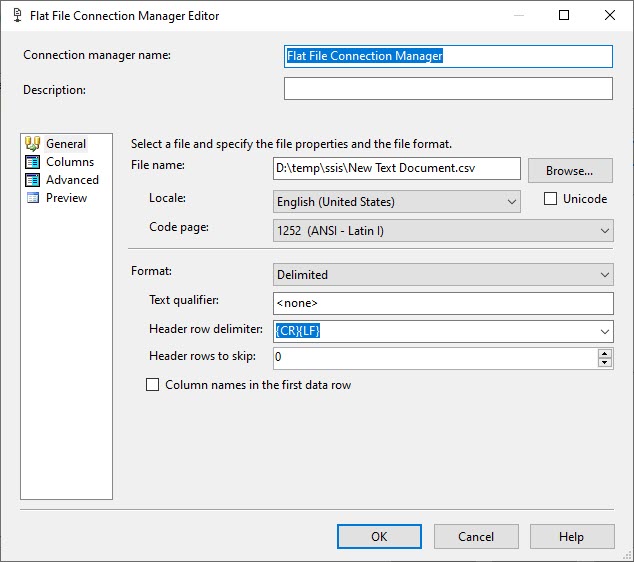 6- یک فایل csv در آدرس مورد نظر ایجاد کنید. آدرس فایل رو در کادر File قرار دهید. (اگر لازم بود که به صورت UTF-8 ذخیره کنید تا متون فارسی به درستی نمایش داده بشوند)
