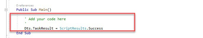 برای پاک کردن فایل هایی که تاریخ ایجادشون بیشتر از n روز شده هم لازمه با استفاده از کد VB یا #C این کار رو انجام بدیم. که در این مثال من از VB استفاده می کنم که به نظر خودم خوندنش و نوشتنش راحت تره! البته می تونید دیتا رو در فرآیند دیگه ای ETL کنید و با تسک های خود SSIS آرشیو کنید و MOVE به فولدر دیگه!