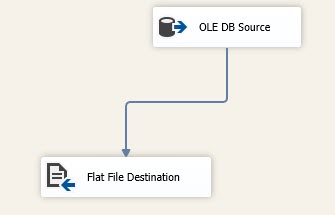 4- یرای ذخیره خروجی در قالب فایل csv یک Flat File Destination هم در صفحه قرار دهید و OLE DB Source را به آن متصل کنید و دابل کلیک کنید.