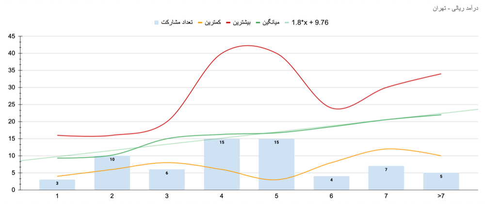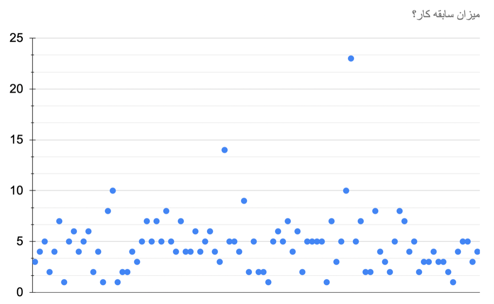 با تحلیل همه داده ها میشه نمودار زیر رو ترسیم کرد که بر اساس میزان سابقه کاری ترسیم شده.