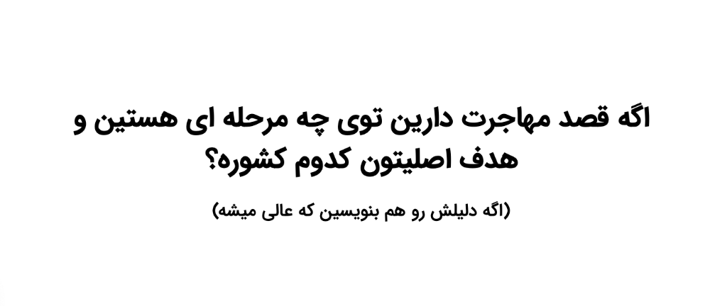 اگه قصد مهاجرت دارین توی چه مرحله ای هستین و هدف اصلیتون کدوم کشوره؟ اگه دلیلش رو هم بنویسین که عالی میشه