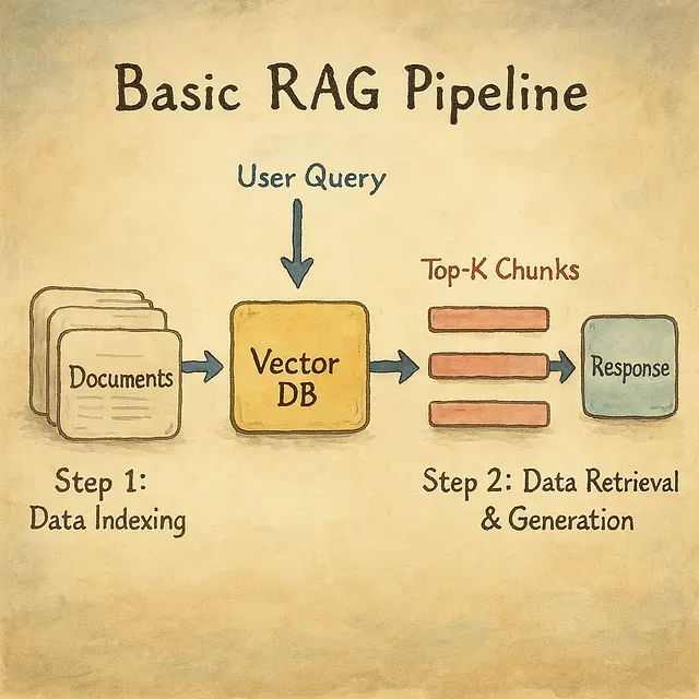 آماده کردن برگهها (Indexing): همه اسناد دانشت رو میگیری، به تیکههای کوچیک ("chunks") تقسیمشون میکنی و تبدیلشون میکنی به یه سری کد عددی خاص (embeddings) که معنیشون رو نگه میداره. بعد اینا رو تو یه کتابخونه قابل جستجو (vector database) میذاری.