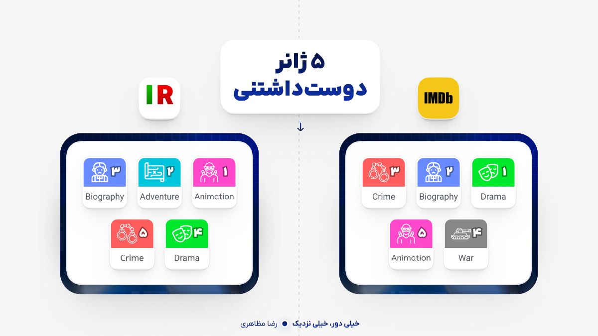 از بین فیلمهای مجموعه دادهی در دست، ۱۳ درصد را هر دو گروه پسندیدند و ۸ درصد را هیچ کدام از دو گروه دوست نداشتند، ۴ درصد از فیلمها را کاربران ایرانی دوست داشتند و کاربران وبسایت IMDb خیر، همچنین ۲ درصد از فیلمها را کاربران IMDb دوست داشتند اما کاربران ایرانی خیر.