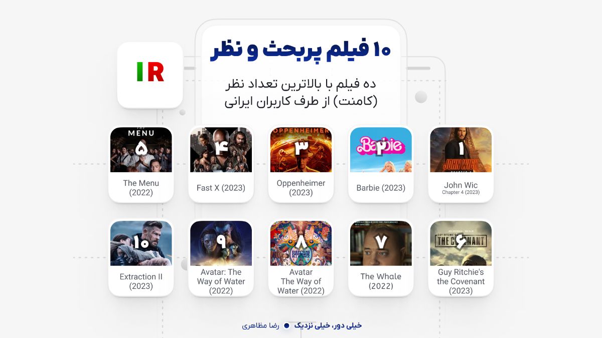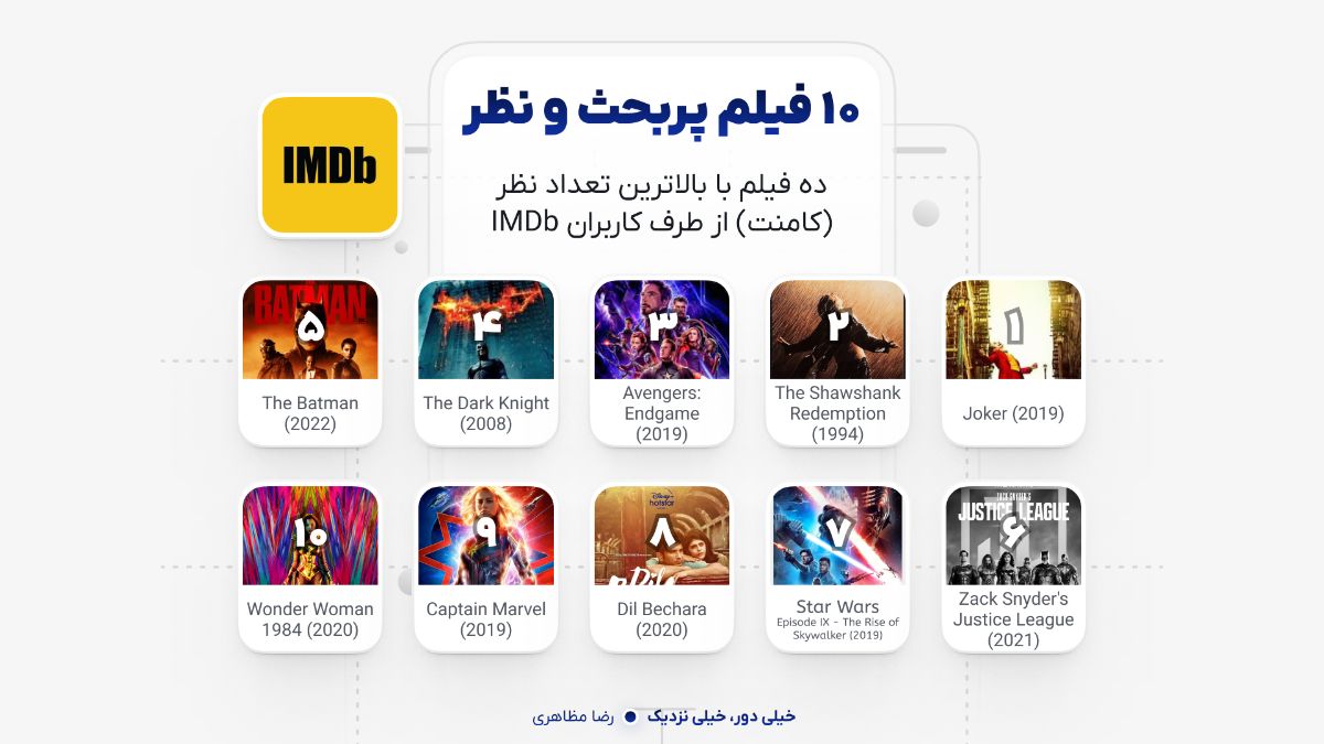 در این قسمت فیلمهایی را میبینیم که دربارهی آنها بیشترین تعداد نظر (کامنت) به ثبت رسیده است. اشاره به این موضوع که در اینجا فقط تعداد نظرها مورد بررسی بوده نه مثبت و منفی بودن آنها، حائز اهمیت است.