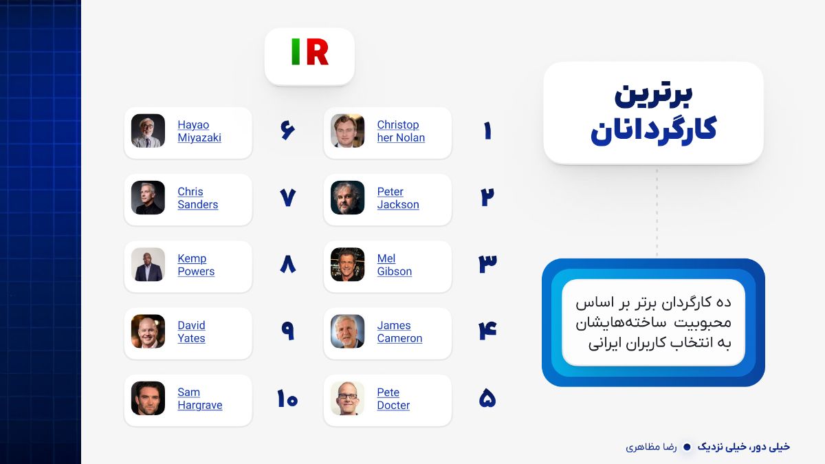 مشکلی که درباره فیلمهای با امتیاز بالا و تعداد رأیدهندهی کم داشتیم، در این حوزه نیز میتواند مشکلساز باشد. در صورت رتبهبندی کارگردانان تنها بر اساس میانگین امتیاز ساختههایشان، کارگردانانی که تعداد فیلمهای کمتری با امتیازات نسبتاً خوب دارند، رتبههای بالا را به خود اختصاص میدهند. از این رو در رتبهبندی کارگردانان نیز، همانند رتبهبندی فیلمها، از امتیاز وزندار استفاده میکنیم تا رتبه بندی عادلانهتری داشته باشیم.