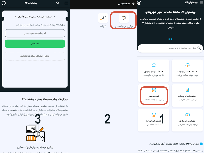 شما با مراجعه با سامانه پیشخوان ۲۴ میتوانید پیگیری مرسوله پستی در سه قدم انجام دهید؛ برای این کار کافیست بهصورت زیر عمل کنید:
