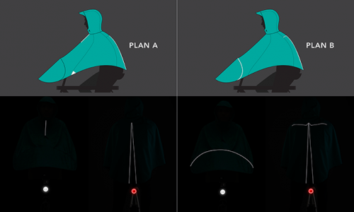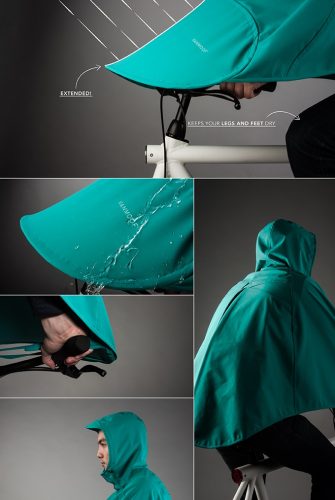 در طراحی این لباس بارانی، ارگونومی بدن موتورسوار بهطور کامل در نظر گرفته شده است. ساختار آن به شکلی است که هنگام نشستن روی موتور، لباس جابهجا نشده و از نفوذ آب به نواحی حساس جلوگیری میکند. همچنین طراحی آن به گونهای انجام شده که دید راننده و کنترل فرمان موتور تحت تأثیر قرار نگیرد.