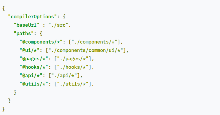 این تنظیمات به کامپایلر typescript مربوط میشه و بنابر این داخل فایل tsconfig.js نوشته میشه. داخل آبجکت compilerOptions و قسمت paths میتونیم تعریفشون کنیم:
