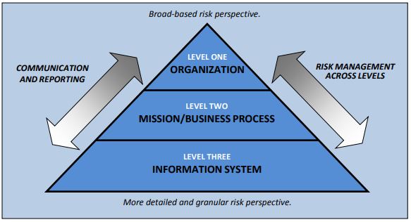 در NIST Risk Management Framework، مدیریت ریسک در سه لایه بههمپیوسته انجام میشود که هر کدام نقش مشخصی دارند.