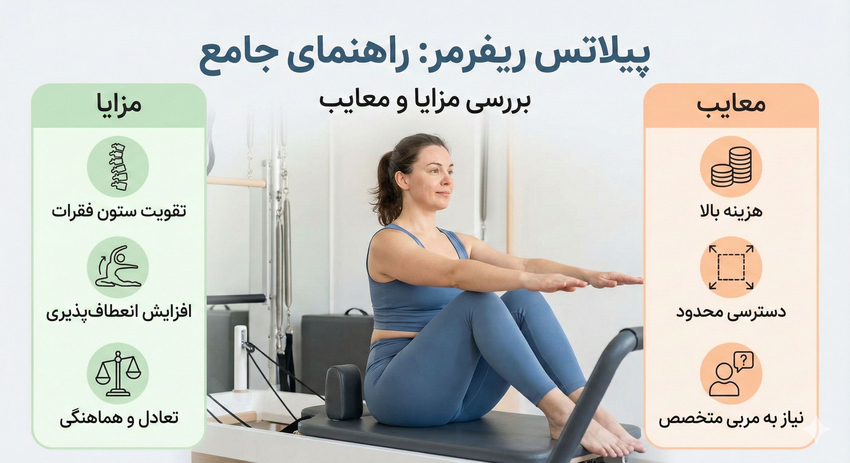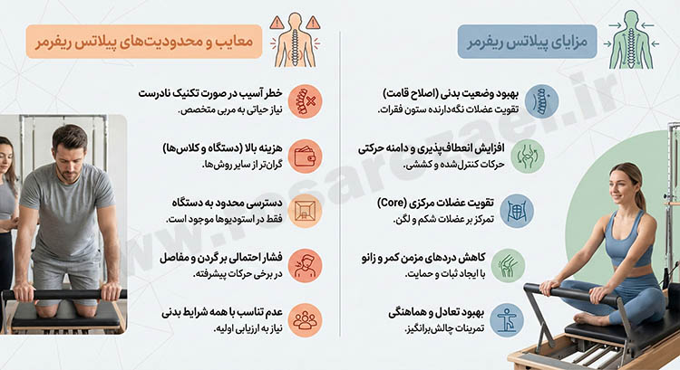 اگر ریفرمر درست تنظیم نشود یا بدن آمادگی نداشته باشد، فشار روی کمر، گردن و زانو بیشتر میشود.