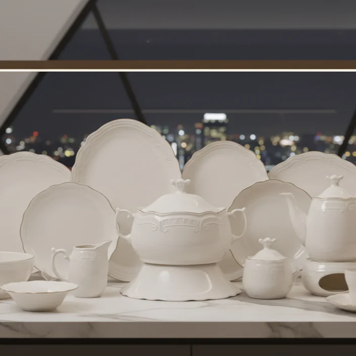 سبک مدرن لوکس: چینیهای عاجی یا با جزئیات طلایی یا نقرهای، جلوهای از شکوه و دقت به جزئیات را نشان میدهند.
