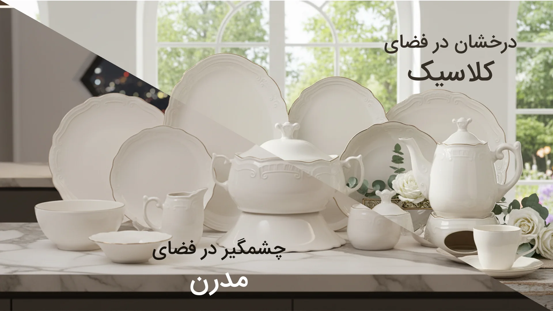 سبک کلاسیک: سرویسهای چینی با نقشهای گلدار یا سنتی، فضایی گرم و صمیمی میسازند.
