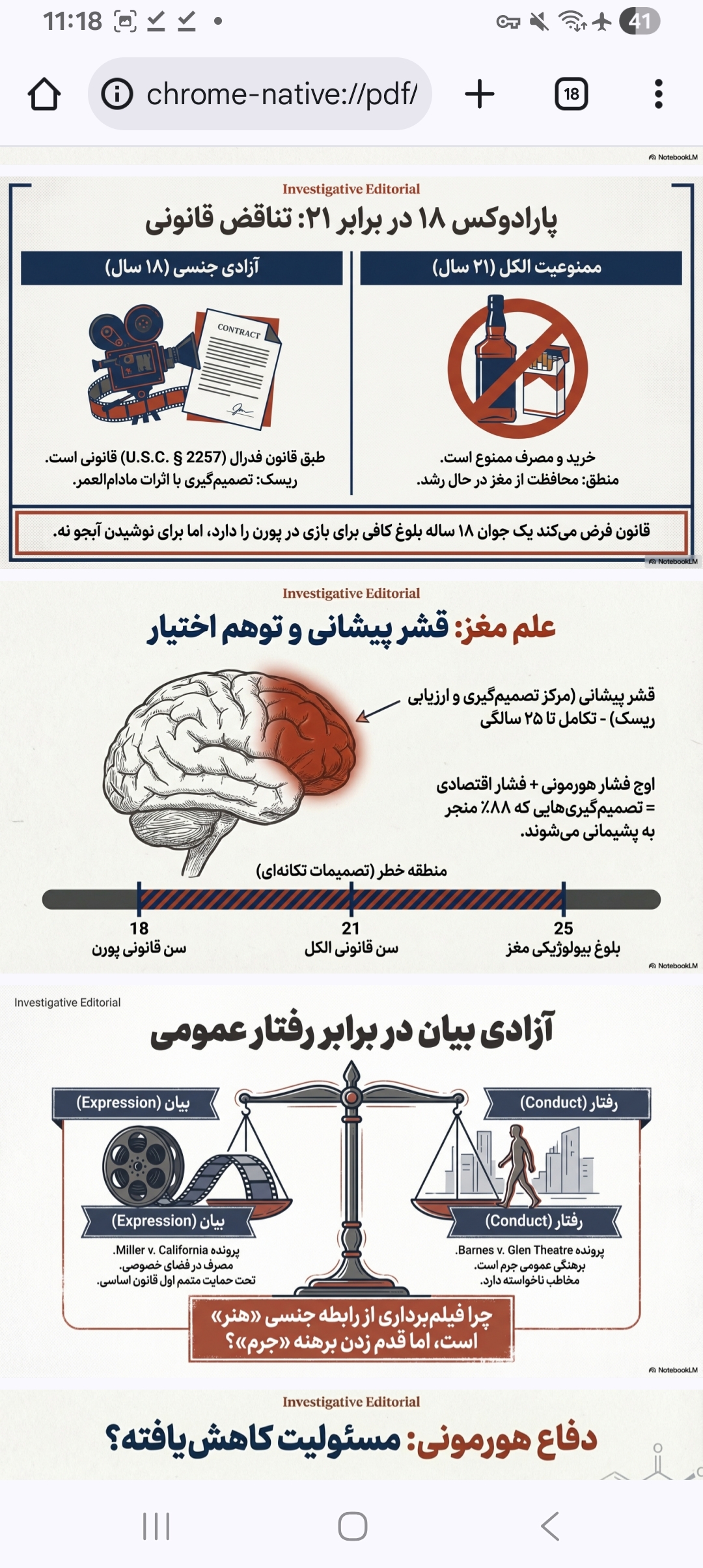 ۱۸ سالگی؛ سن اکثریت (Majority): سنی که قانون فرد را مسئول میشناسد، اما نوروساینس میگوید او هنوز به "پختگی" (Maturity) نرسیده است.