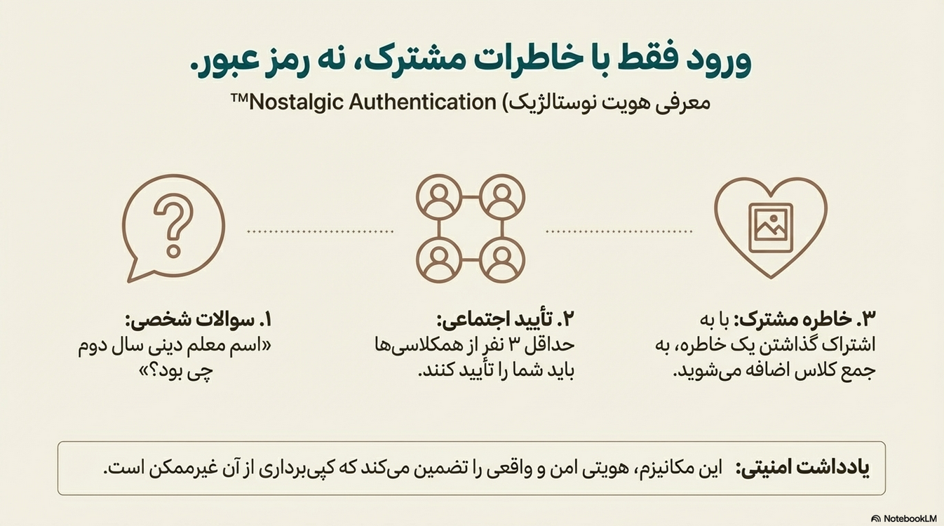 سوالات نوستالژی: سوالاتی که فقط یک همکلاسی واقعی میتواند پاسخ دهد (مثلاً اسم معلم دینی سال دوم یا توصیف معلمها),.