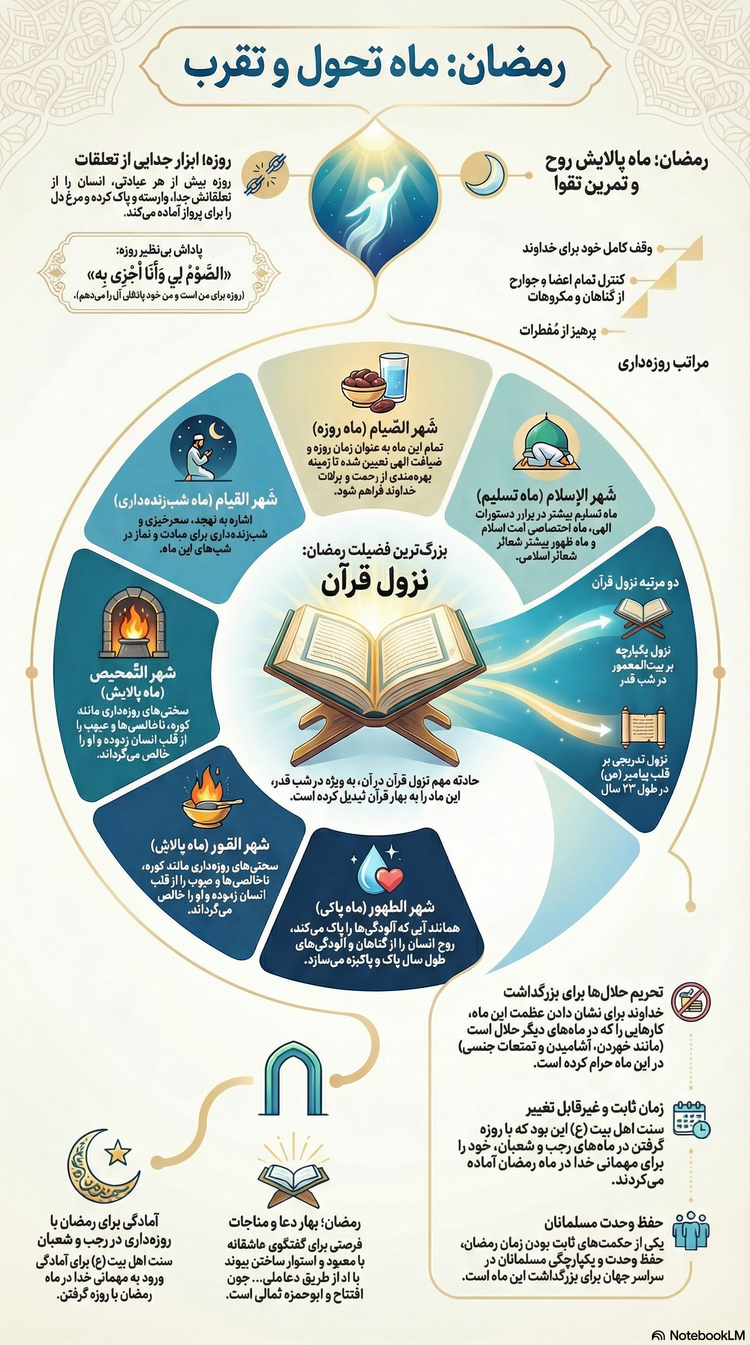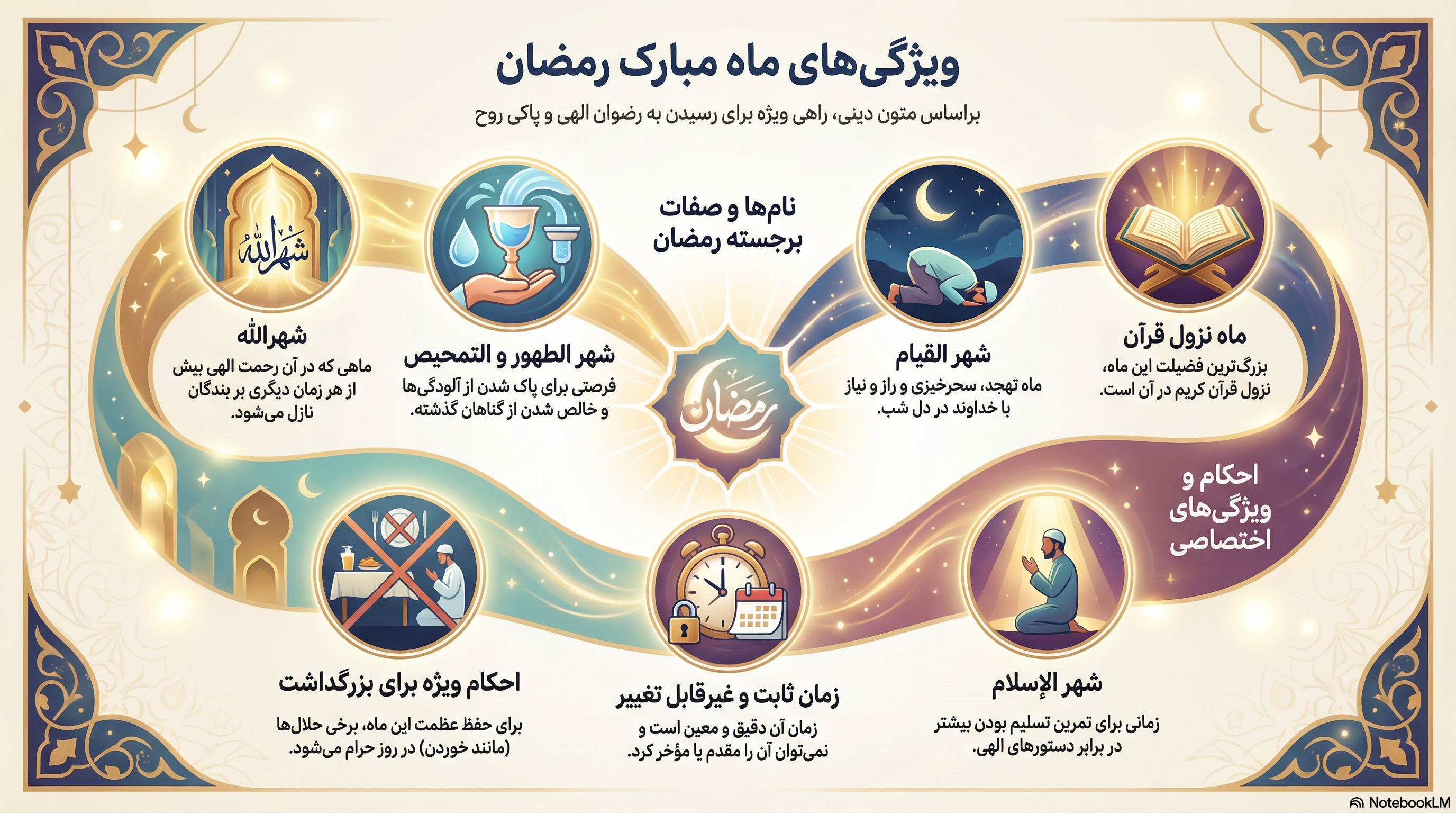 شَهْرَ الصِّیَامِ (ماه روزهداری): این ماه، فرصتی طلایی برای تمرین صبر، استقامت و کنترل بر خواستههای نفسانی است.