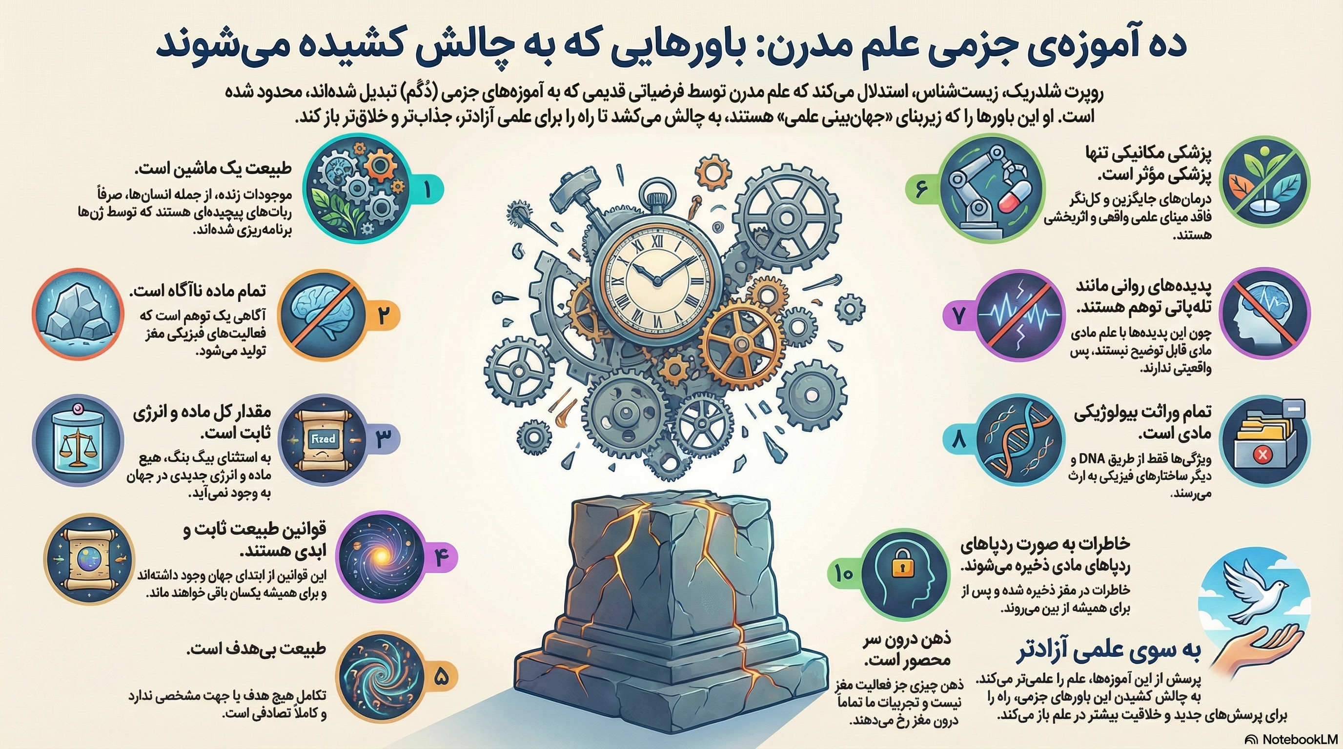 زیر سؤال بردن جزمهای علمی یک عمل «ضد علم» نیست. در عوض، همانطور که شلدریک استدلال میکند، این کار علم را علمیتر، جالبتر و پذیرای اکتشافات جدید میکند. رها کردن مفروضات قدیمی به ما اجازه میدهد تا پرسشهای جدید و عمیقتری بپرسیم و جهان را با نگاهی تازه ببینیم. چه جزمهای دیگری را ناآگاهانه پذیرفتهایم، و با به پرسش کشیدن آنها، چه مرزهای جدیدی در دانش به روی ما گشوده خواهد شد؟