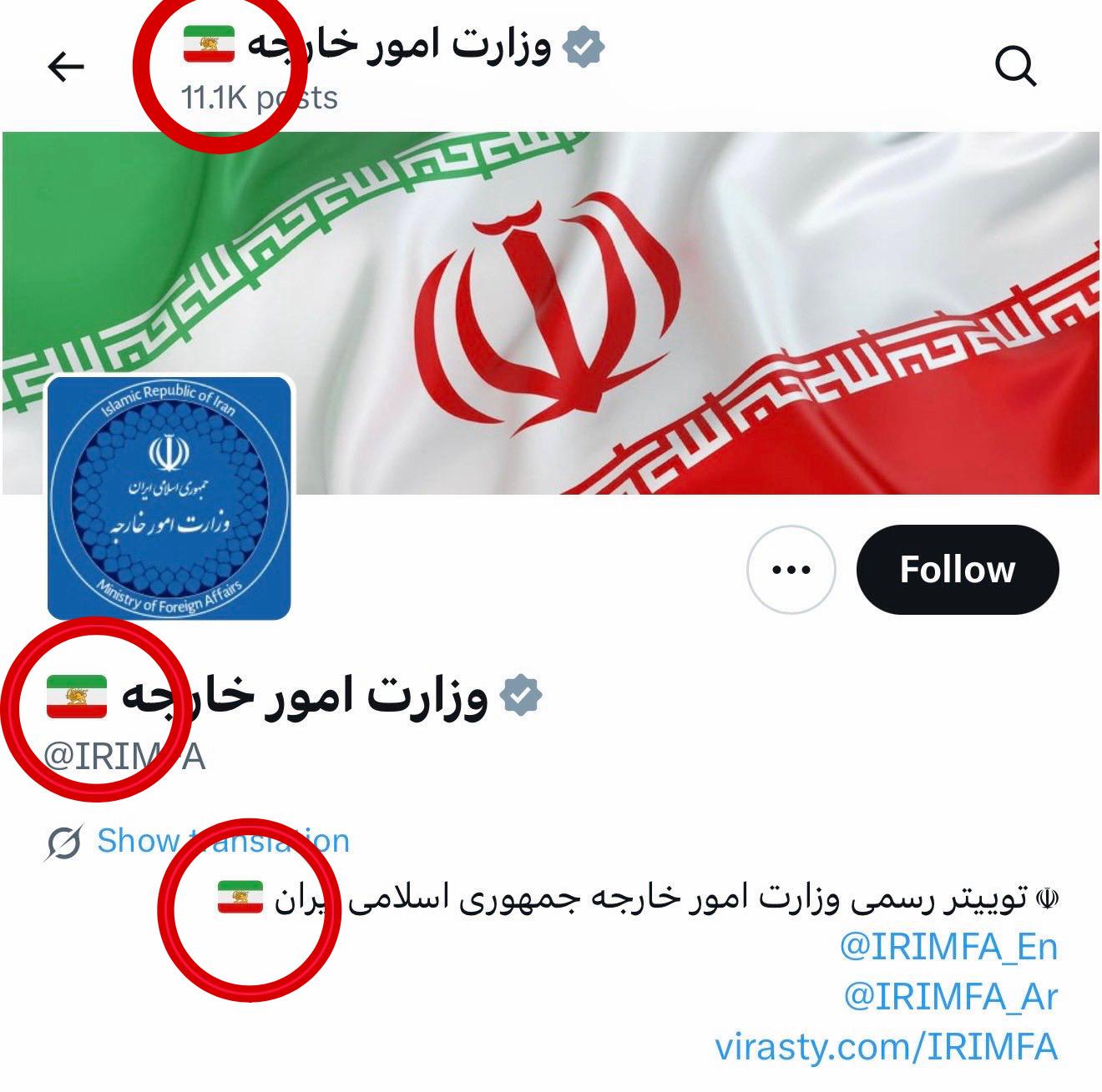 پرچم ایران در توییتر از نماد جمهوری اسلامی به نماد شیر و خورشید تغییر پیدا کرده.... ایکس یا همون توییتر مهمترین پلتفرم بین المللی بود که حاکم و زیردستانش در آن فعالیت میکردن و هم اکنون این اتفاق برایش افتاده...