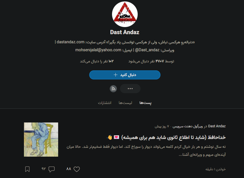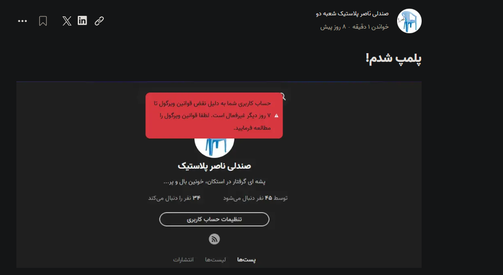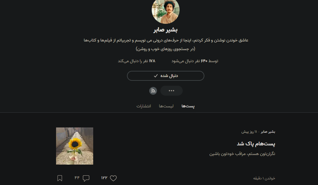 مدیر ویرگول هم انسانی است مثل من و شما و با هر پست ممکن است جان و مالش در خطر باشد...طبیعی است که بخواد نوشته ها را مسدود کند...