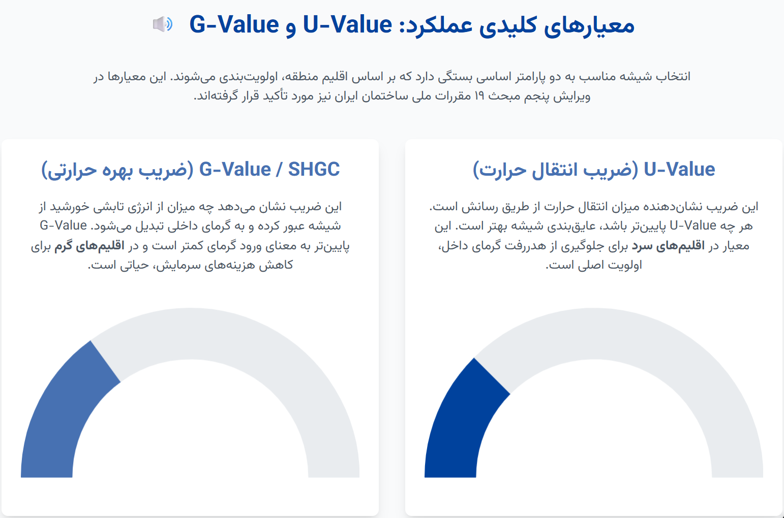 انتخاب مقادیر بهینه برای U-value و SHGC به طور مستقیم به شرایط اقلیمی منطقه بستگی دارد. ایران با تنوع اقلیمی گسترده خود، نیازمند رویکردهای متفاوتی در طراحی نما است:
