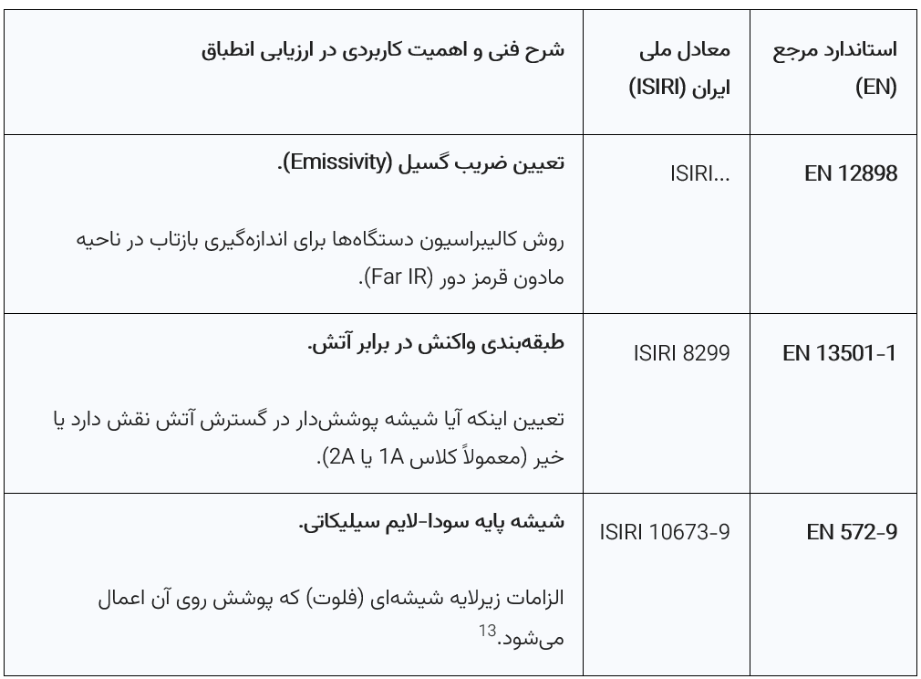 استاندارد EN 1096-4 یک سند مستقل نیست و برای اجرا به مجموعهای از استانداردهای پشتیبان وابسته است. درک این مراجع برای تفسیر صحیح نتایج آزمون ضروری است. در جدول زیر، تحلیل دقیقی از مراجع الزامی و معادلهای ملی آنها در ایران ارائه شده است.4
