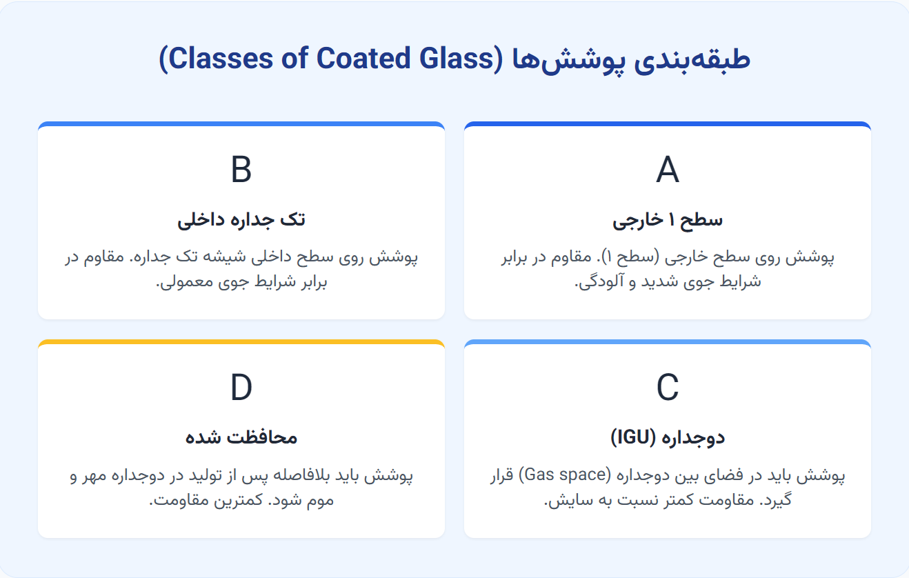 4. نوع پوشش: مثلاً "Coated Glass Class C".